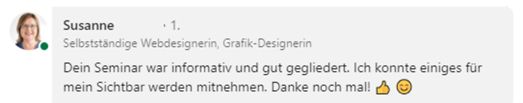 Es gibt einen Weg, wie du sichtbar wirst und Kunden gewinnst, ohne dich zu verbiegen. In diesem Webinar zeige ich dir, wie du LinkedIn mit einer authentischen Strategie für dich arbeiten lässt – ohne Druck, ohne Stress, ohne ständiges Posten.